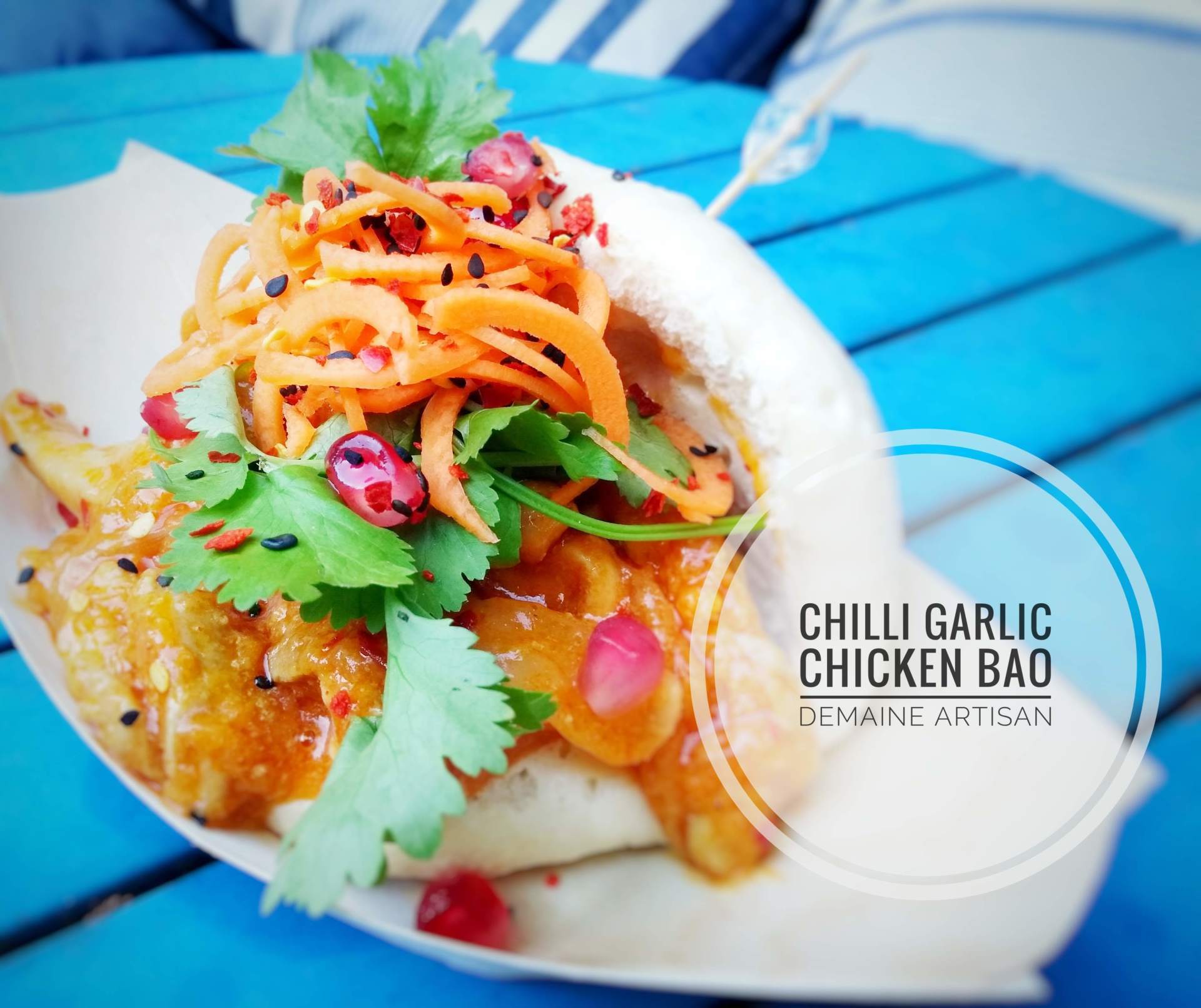 We serve our famous steamed Bao buns , (Taiwanese street food) from a self contained pop up, with its own gas supply we can set up literally anywhere!